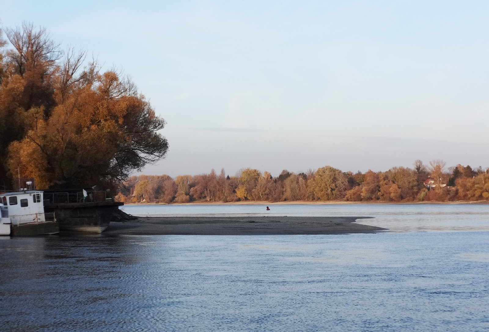 Ahogy átkelünk a komppal Horányból Dunakeszire eleinte a motort sem nagyon kapcsolja be a révész, hagyja magát sodortatni az árral. Egészen a római romokig ereszkedünk, majd óvatosan lassan indul a komp át a túlsó partra. A kalauz kérdésemre elárulja, hogy a zátony miatt kell ekkorát kerülni, a Szürkő-sziget ugyanis messze nyúlik dél felé. Kis része a víz felett látható a megfeneklett hajók és egy kipusztult fűzfa tövében. Ez a fűzfa jelzi a sziget elmosódását, pusztulását. Részben az elmosott anyagból épül a déli zátony tömege. A hajózó úton sincs minden rendben, a kalauz szerint a balparton kibukkanó oligocén agyagból felépülő rétegfejek is messze benyúlnak a hajózóút szélét jelző bójáig.